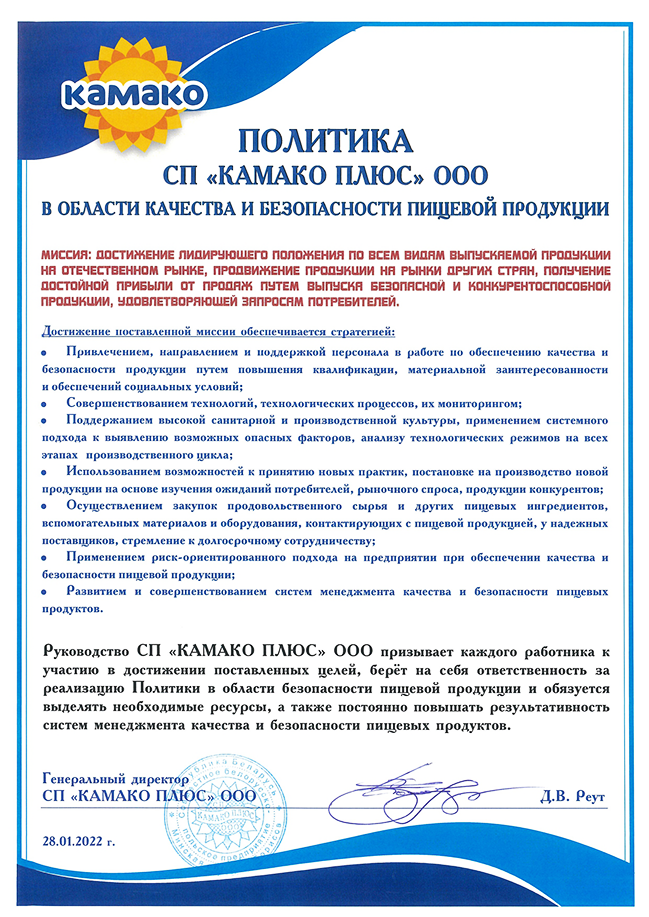 Since the Company’s first days, the main principle was to ensure the product quality. Therefore, in June 1998, we created our own testing laboratory accredited by the national accreditation system of the Republic of Belarus where all raw materials and finished products undergo thorough quality control. It was established to improve our competitiveness on the market in Belarus and abroad, to continuously enhance the production quality, to meet the consumer needs, to improve management efficiency and provide stability and social guarantees to those employed.