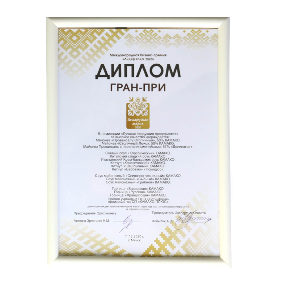 Накануне своего 25-летнего юбилея компания КАМАКО получила награду в престижной международной премии «Лидер года 2020», в очередной раз подтвердив статус эксперта и лидера рынка соусов.